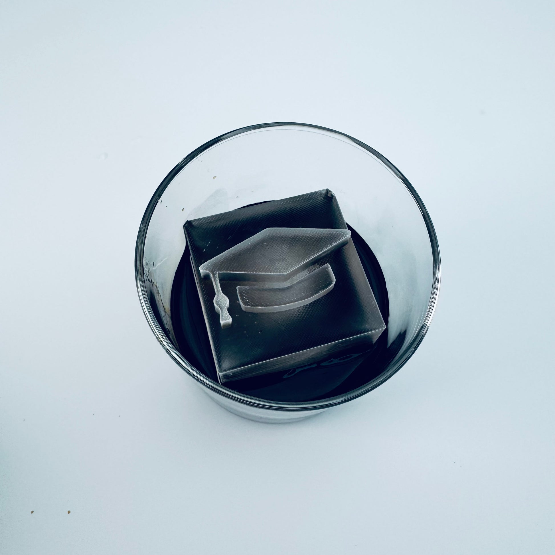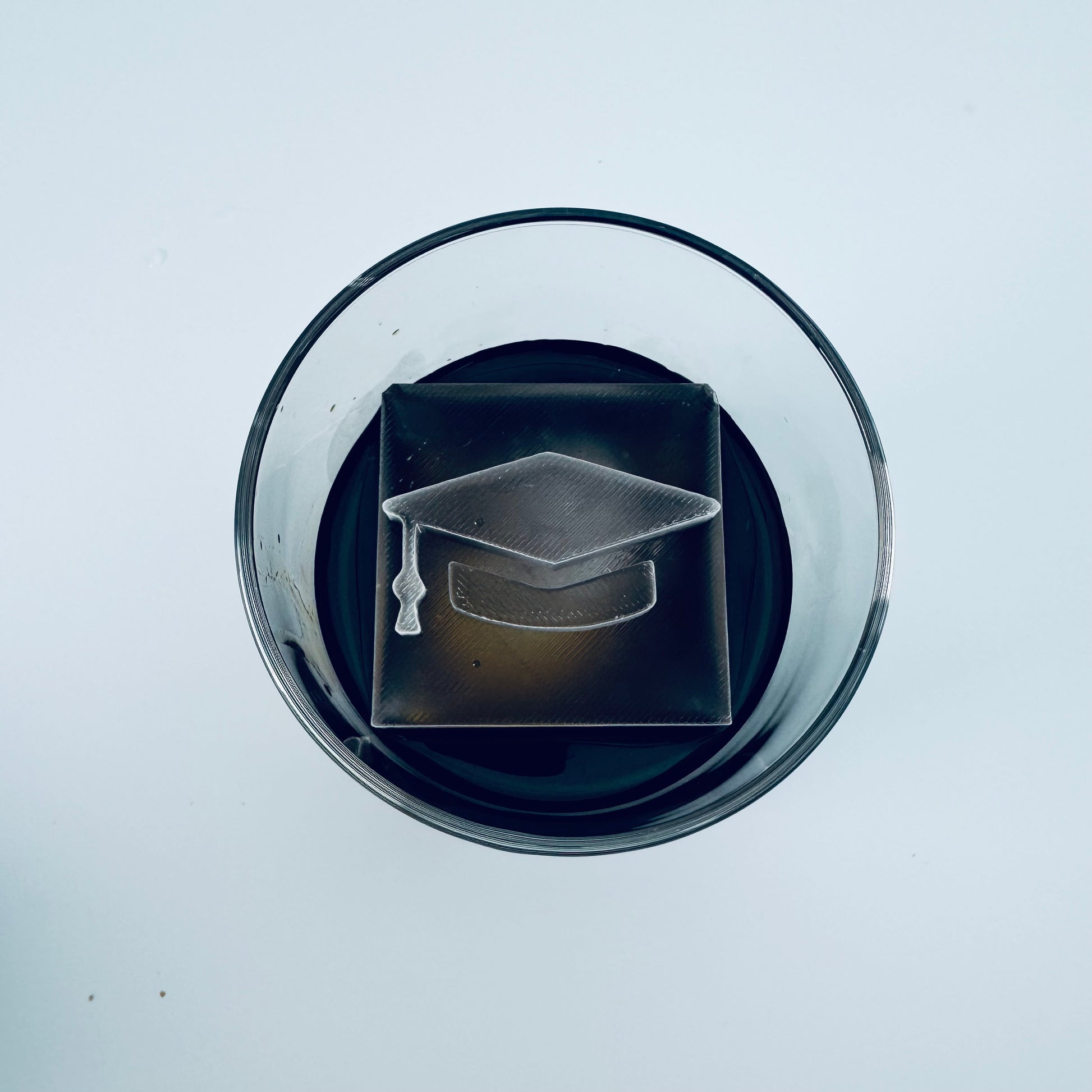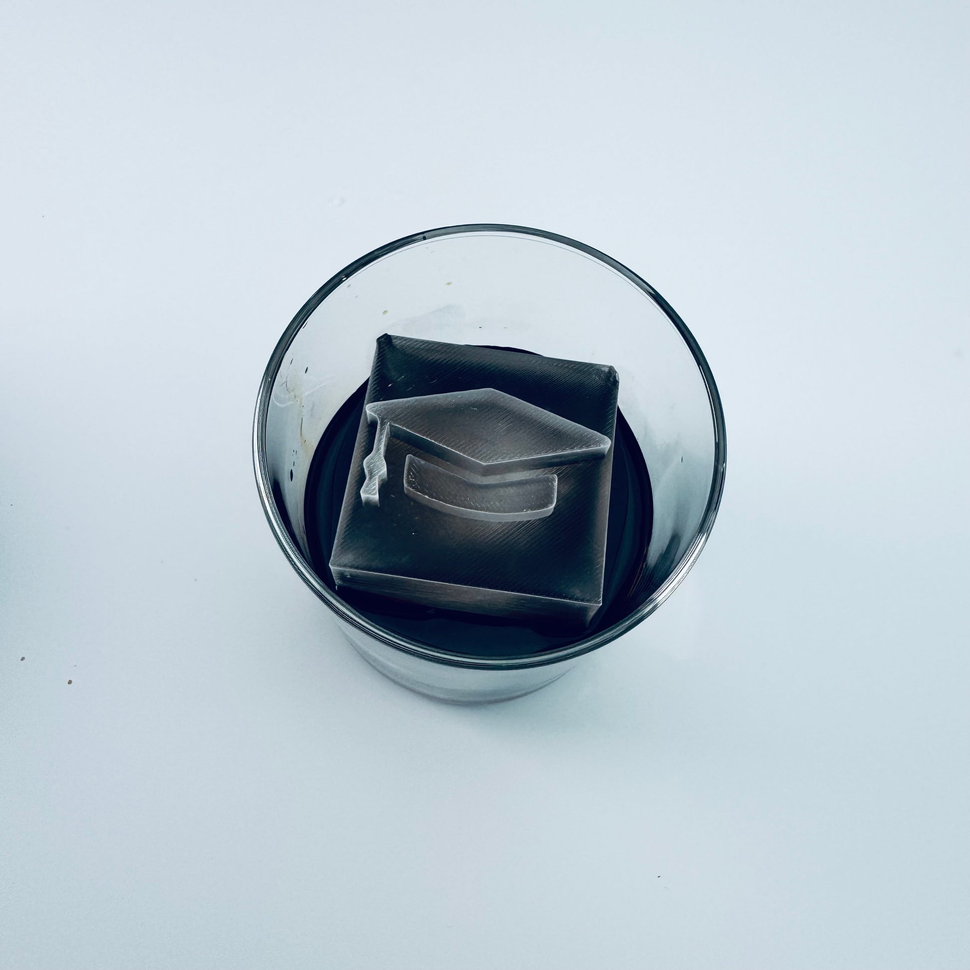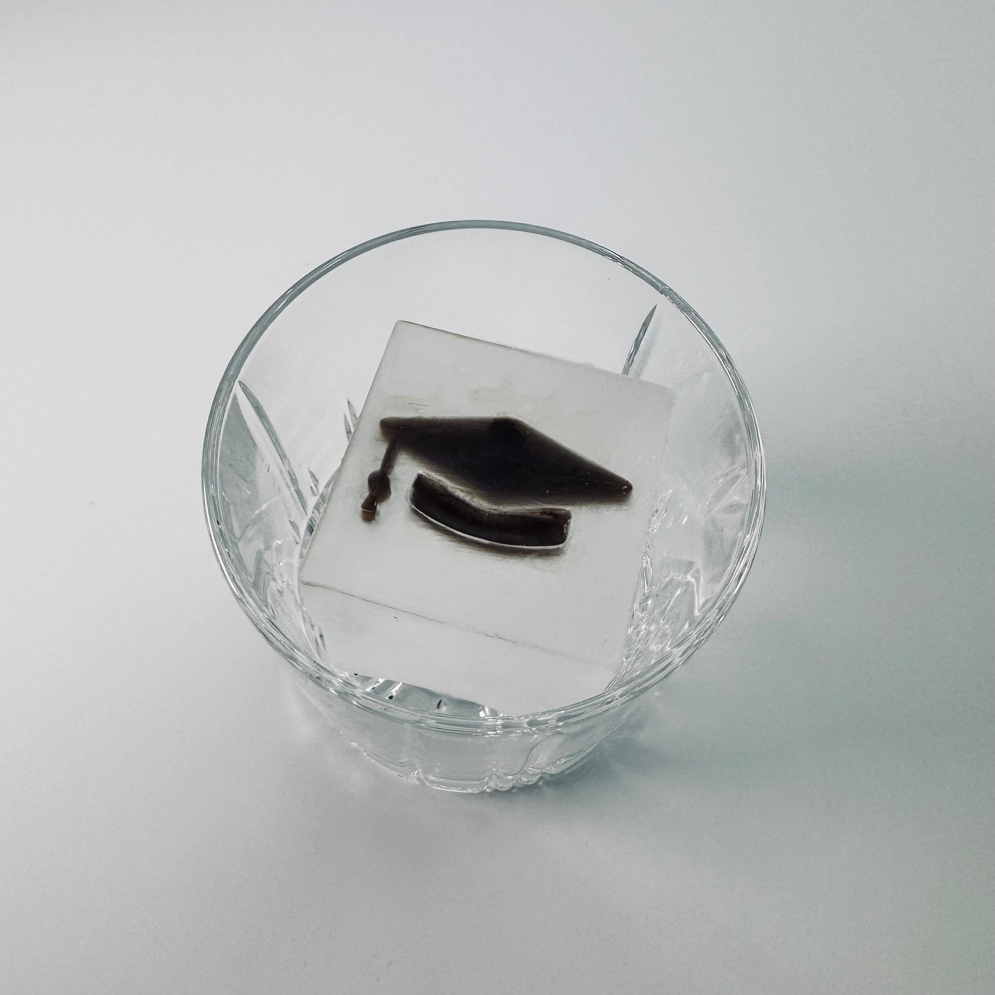 Cubito de hielo de 2,1 pulgadas de alto enmarcado. Este cubito de hielo tiene una letra enmarcada en la parte superior.