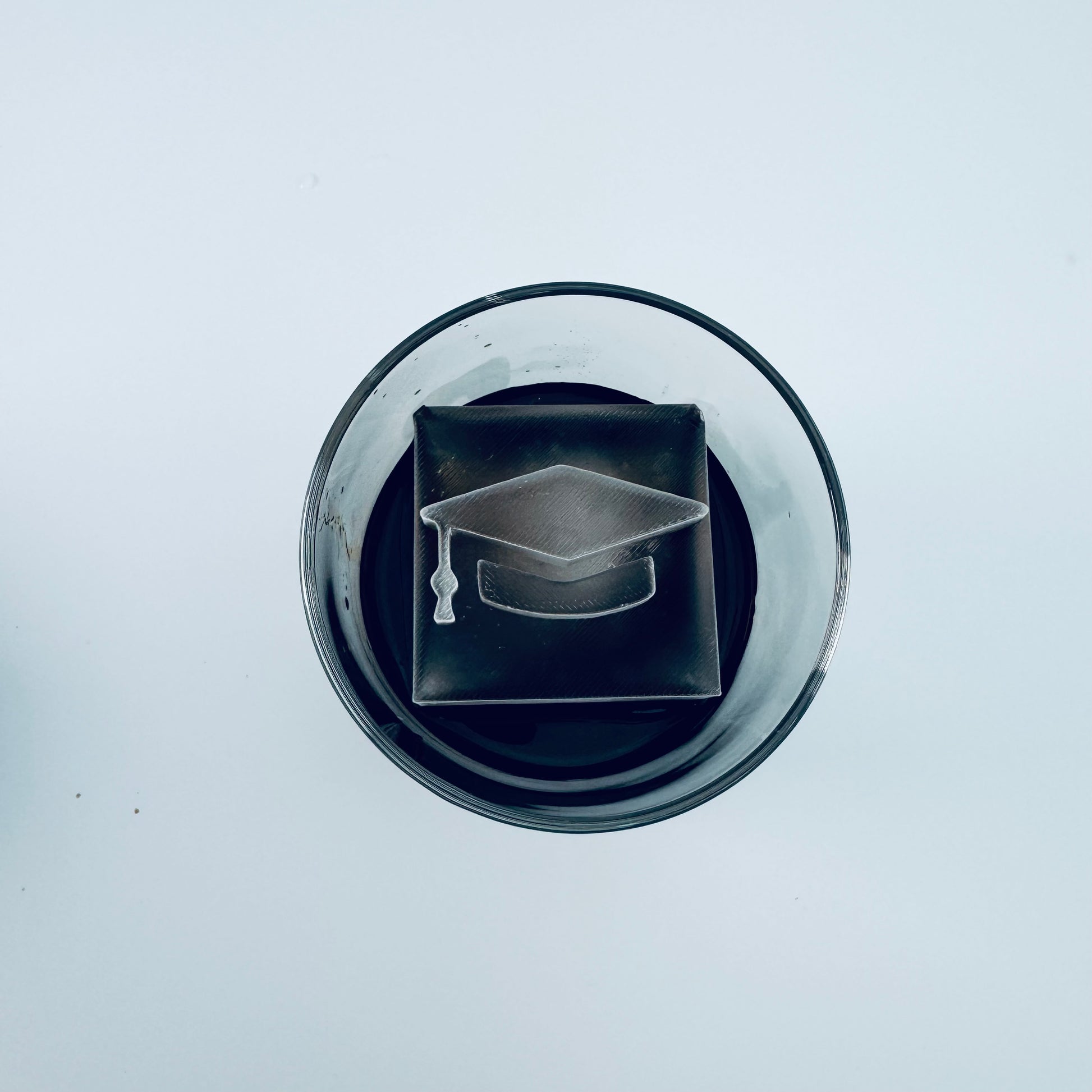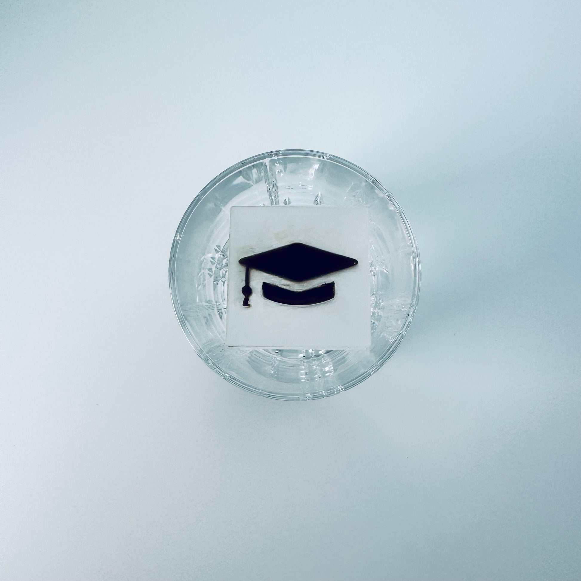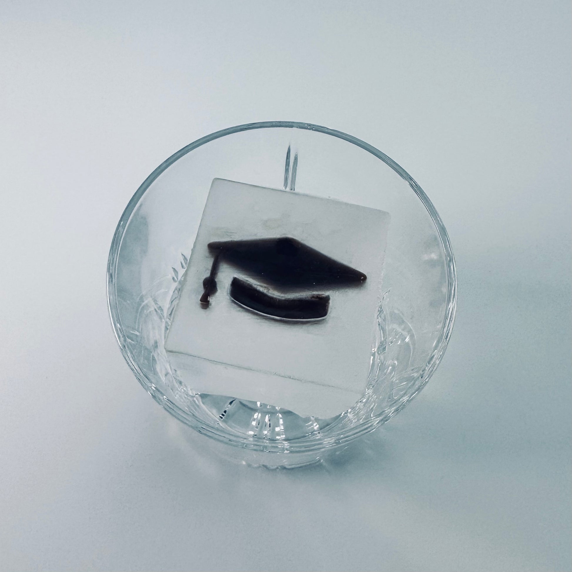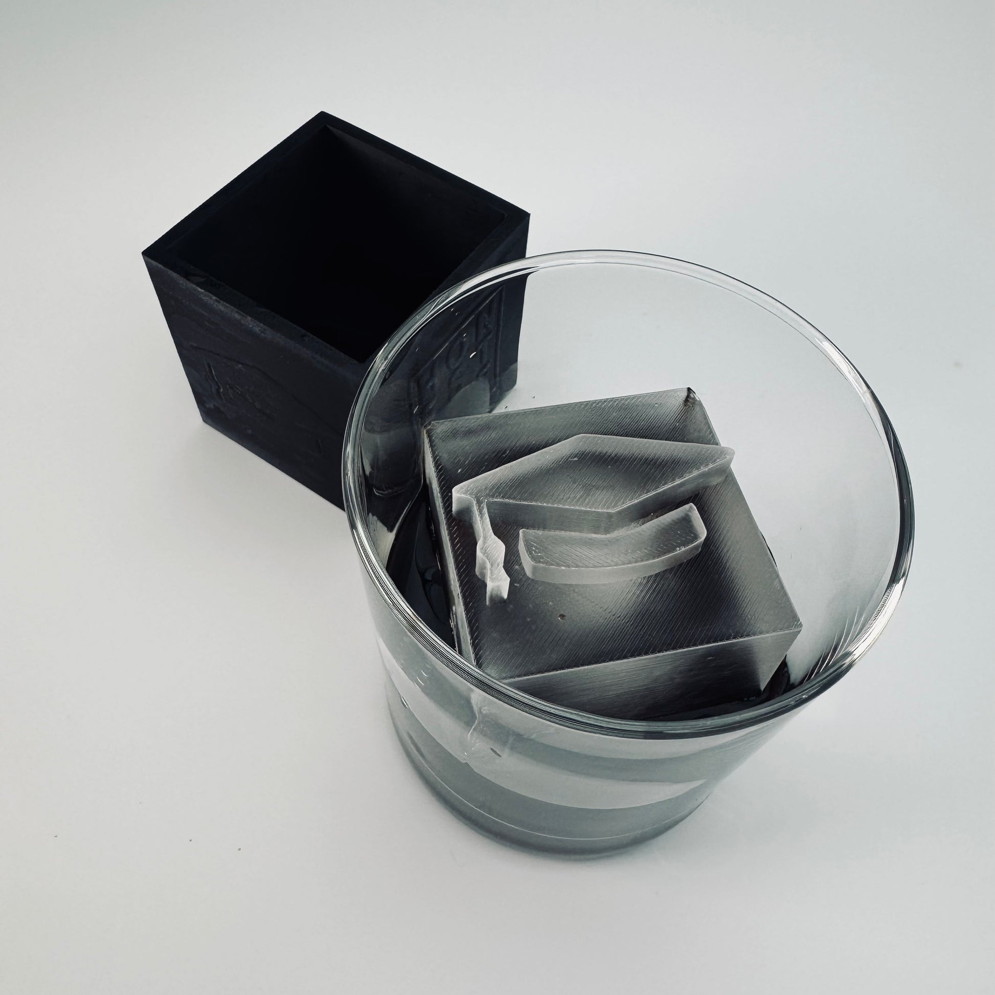 Cubito de hielo de 2,1 pulgadas de alto enmarcado. Este cubito de hielo tiene una letra enmarcada en la parte superior.