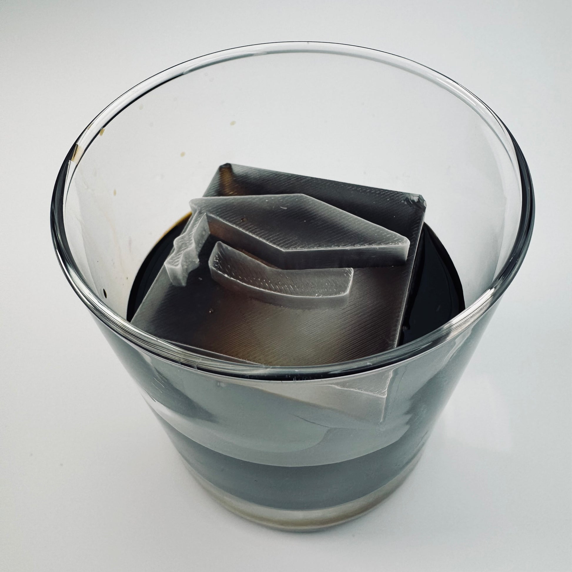 4. Agrega hielo a la bebida y NO la bebida al hielo. Usa PINZAS para colocar con cuidado el hielo en la bebida. Si lo haces correctamente, la superficie superior del cubo de hielo quedará justo por encima del líquido. Esto prolongará enormemente la vida útil de tu diseño.
