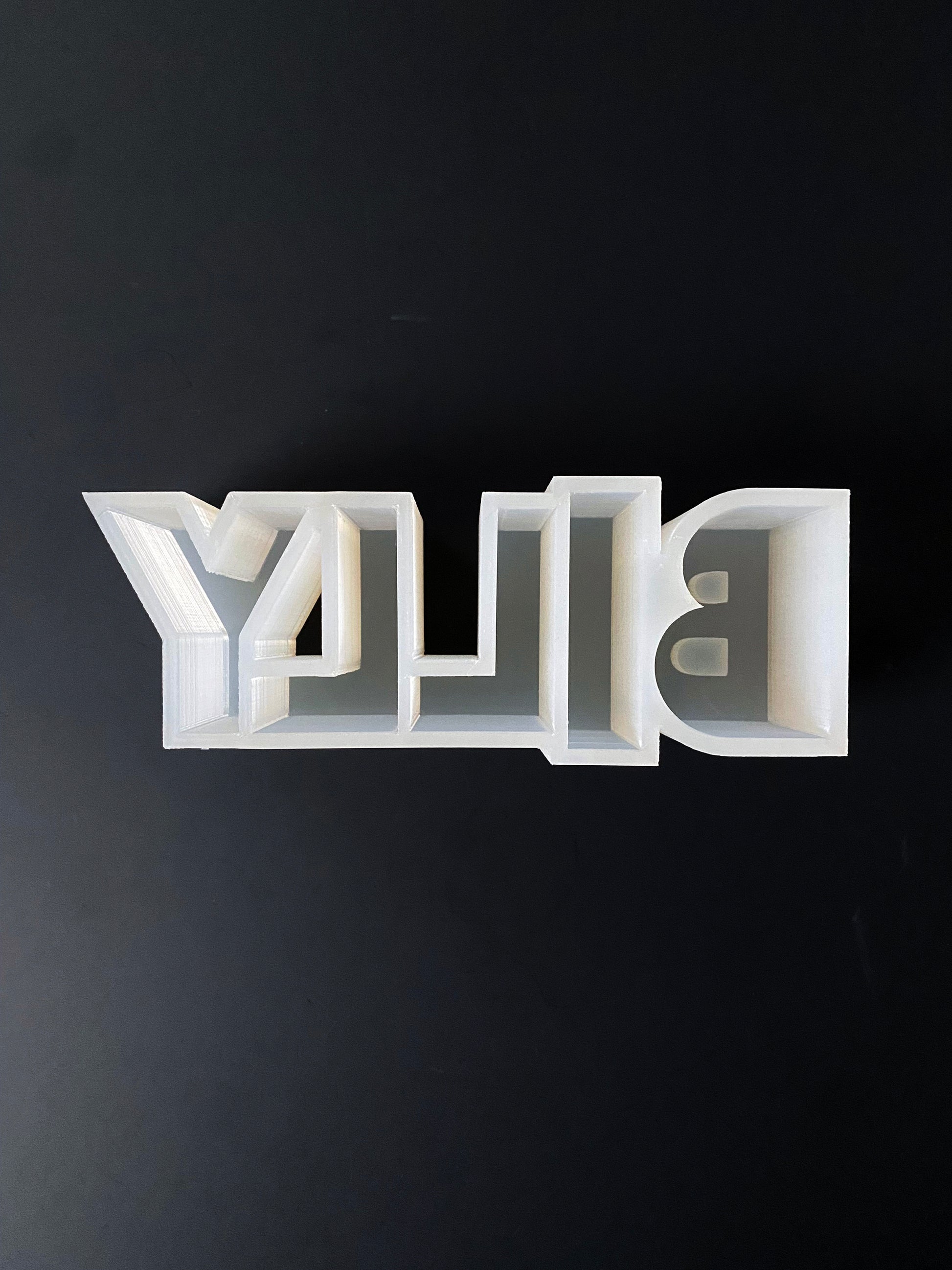 Cada letra está hecha para caber en un vaso de cóctel de 3 pulgadas, lo que significa que la distancia diagonal será de aproximadamente 2,65 pulgadas. ¡Todas las letras tendrán diferentes anchos y largos! Todas las letras tienen una altura de 2,1 pulgadas. Los agujeros en las letras (como en "A", "B", "R", etc.) no se extenderán por completo. El "agujero" tendrá entre 8 y 12 mm de profundidad según el diámetro del agujero.