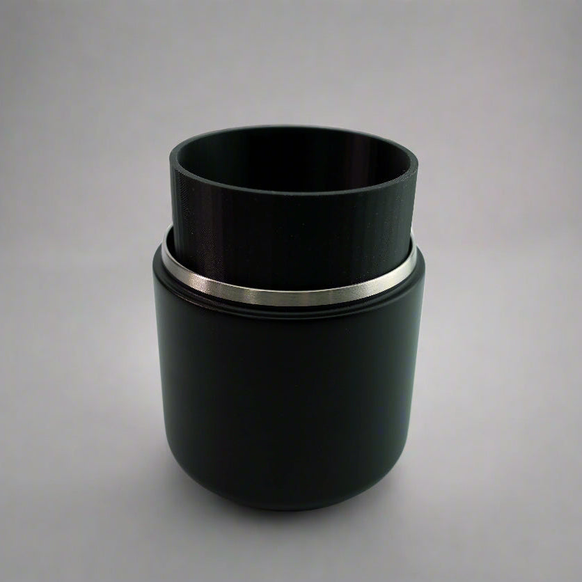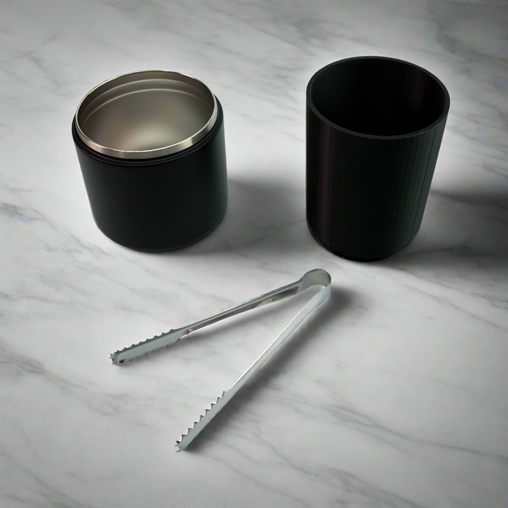 The Shackleton ice press is a 2 piece solid aluminum press that creates a 2.75 inch spheres in approximately 60 seconds. Use cylinder silicone mold and vacuum insulated jar to create impressive looking clear ice spheres. Both are included.