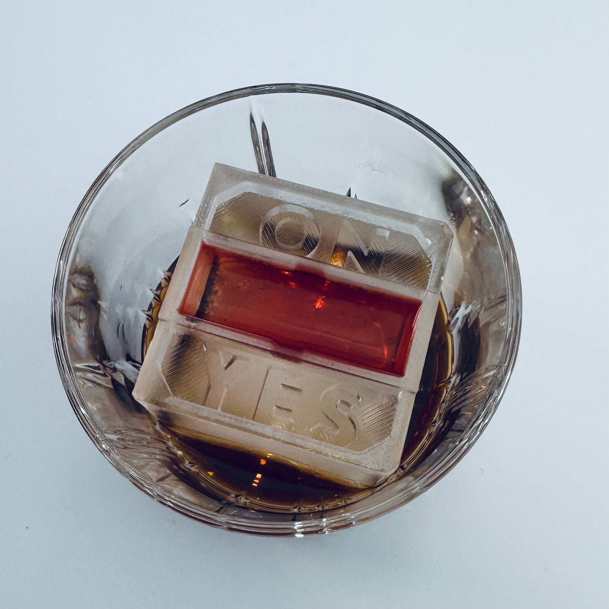 Cubito de hielo de 2,1 pulgadas de alto enmarcado. Este cubito de hielo tiene una letra enmarcada en la parte superior.