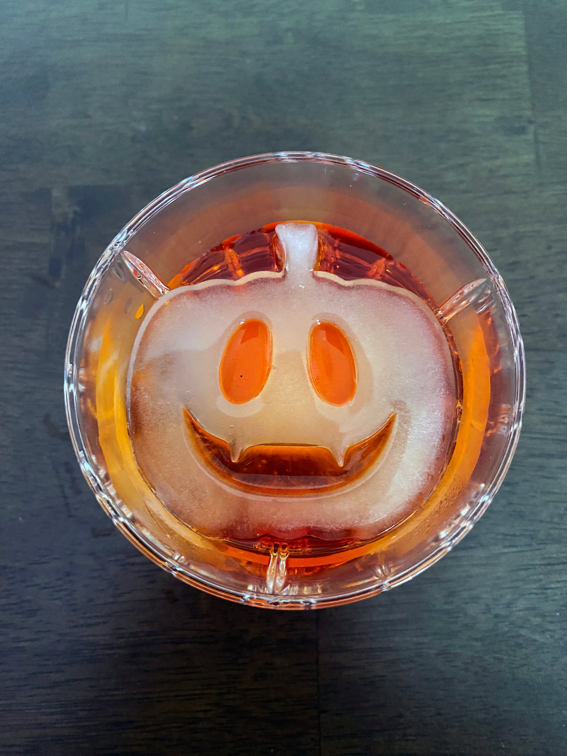Happy Jack o lantern ice mold. Thirsty for your favorite Halloween cocktail.